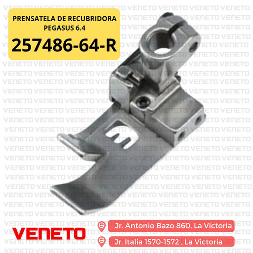 PegasusEl Prensatela 257486-64-R está diseñado para máquinas de coser industriales tipo recubridora Pegasus, con una distancia entre agujas de 6.4 mm (¼ d...