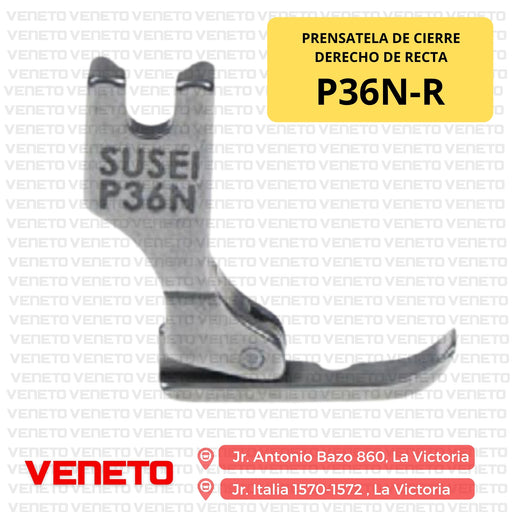 VENETO TEXTILEEl Prensatela P36LN-R es un accesorio especializado para máquinas de coser industriales rectas, ideal para la colocación de cierres y costuras de b...