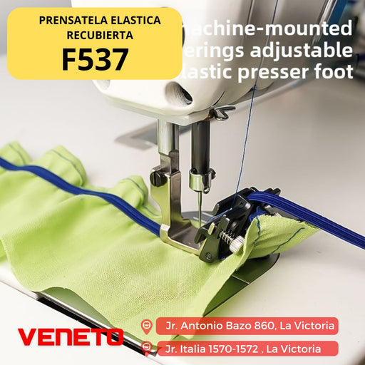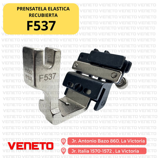 VENETO TEXTILEEl Prensatela F537 es un accesorio especializado para máquinas de coser industriales, diseñado para trabajar con elásticos y materiales de recubrim...