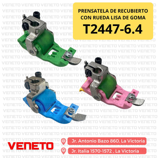 VENETO TEXTILELa Prensatela de Recubierto con Rueda Lisa de Goma T2447-6.4 es perfecta para talleres y fábricas que buscan costuras limpias, planas y elásticas.S...