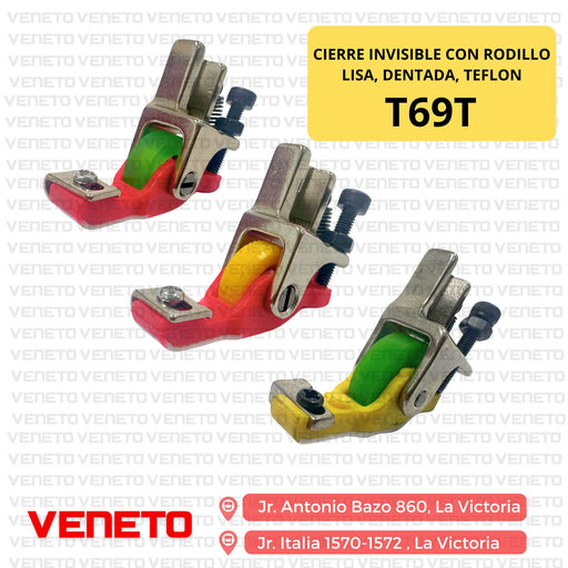 VENETO TEXTILEEl Prensatela T69T es un accesorio especializado para máquinas de coser industriales de una sola aguja, diseñado para la instalación precisa de cie...