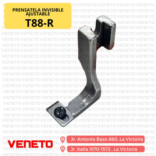 VENETO TEXTILEEl Prensatela T88-R es un accesorio multifuncional y ajustable diseñado para máquinas de coser industriales. Su estructura metálica de alta resiste...